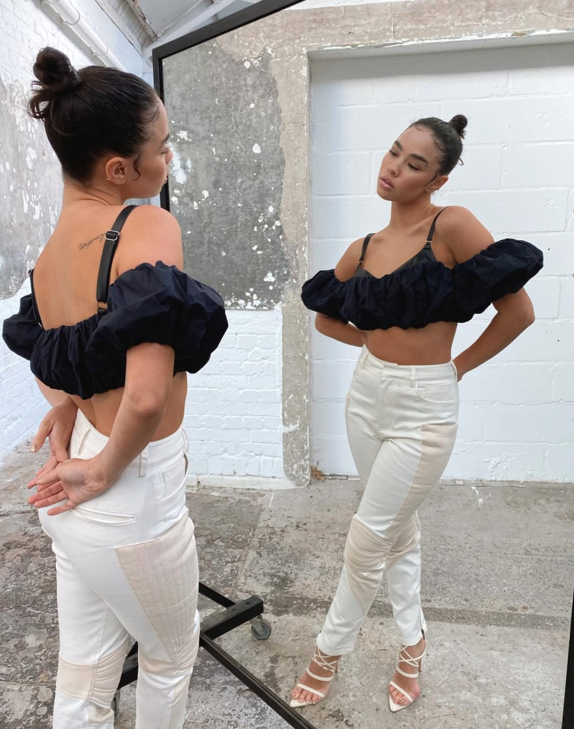 Flirty, bold, and unapologetically chic — The Amerlie Top makes a statement with its voluminous puff sleeves and ruched, off-the-shoulder silhouette. Featuring adjustable straps for the perfect fit, this cropped design adds playful drama to your look, styled perfectly with high-waisted jeans, tailored trousers, or your favourite mini skirt.