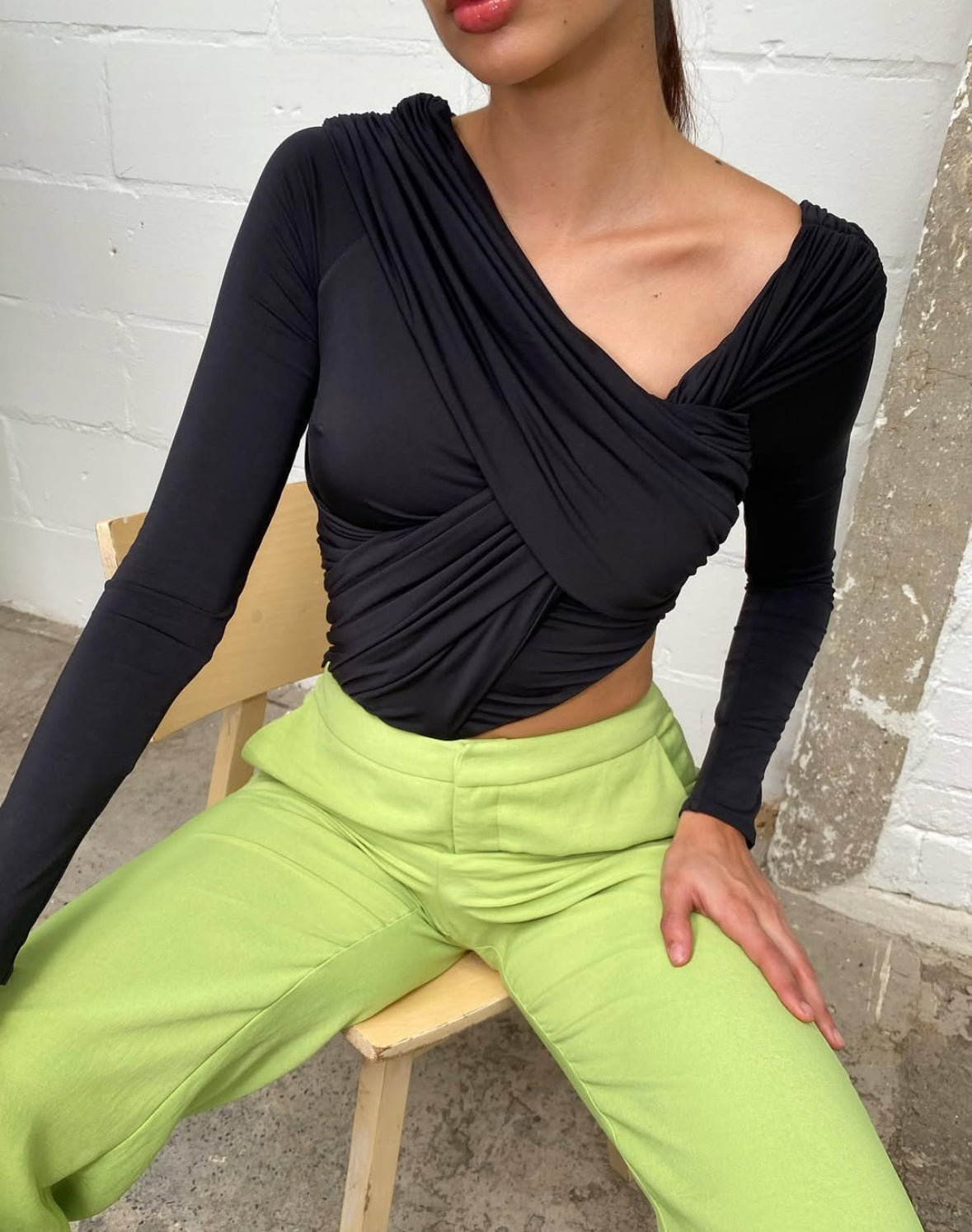 Sculpting, smooth, and seriously flattering — this black ruched bodysuit is your new wardrobe essential. Designed with soft stretch fabric and subtle gathering to contour your shape.