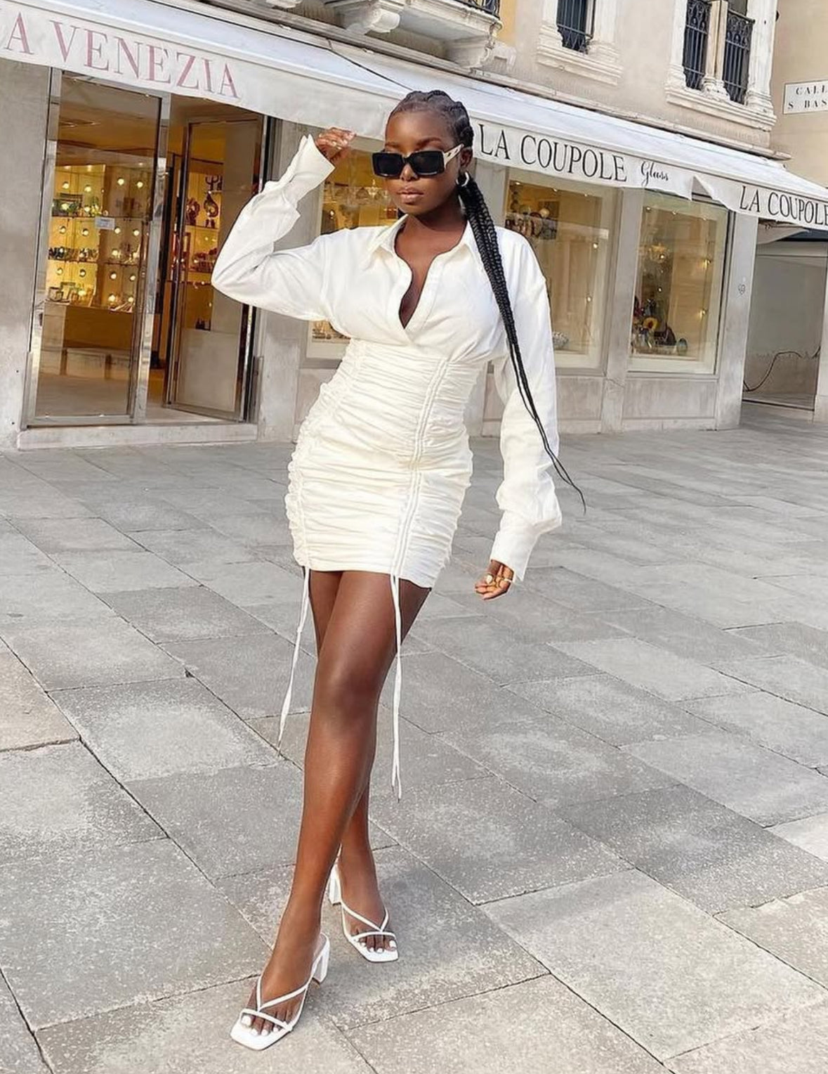 Your power move in dress form. The Blair blends sharp tailoring with a snatched silhouette — featuring an oversized shirt collar, exaggerated cuffs, and a ruched mini skirt that does the most with minimal effort. It’s clean, elevated, and just the right amount of extra. Perfect for the woman who’s always one step ahead.