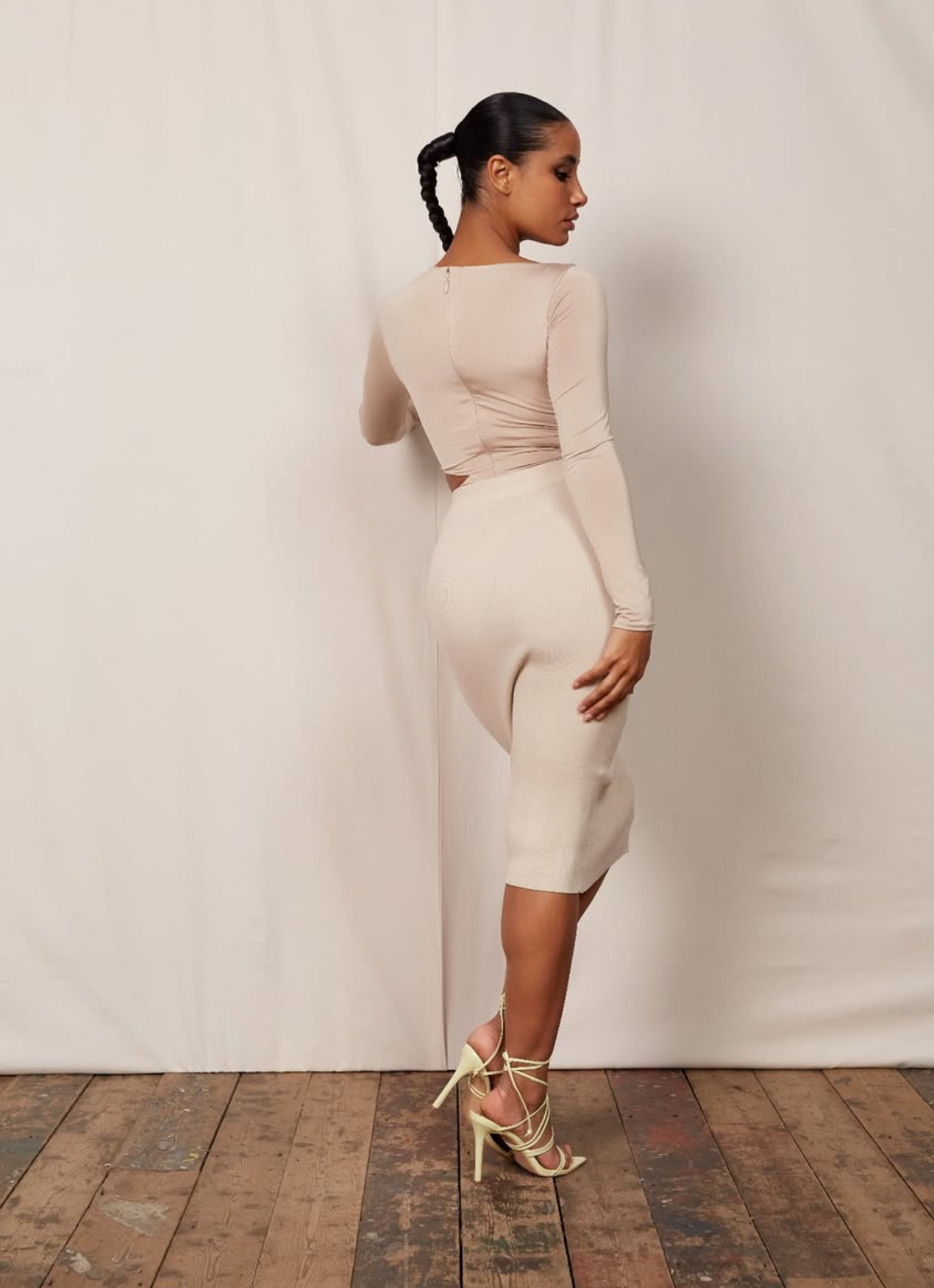 Timeless, sculpted, and effortlessly refined — The Liana Skirt is designed to contour your shape with soft stretch fabric and subtle seam detailing. The high-waisted fit gives you a clean, elevated silhouette that works from day to night. Pair with heels or dress it down — she’s understated luxury at its best.