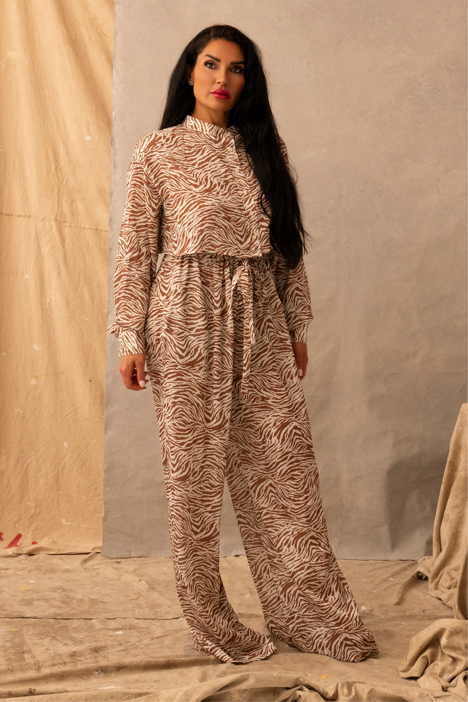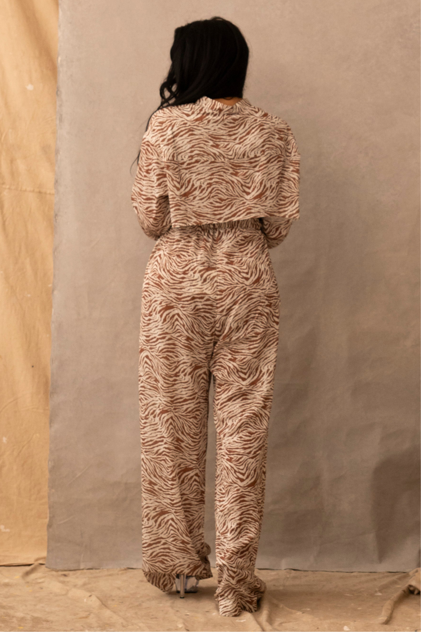Soft tailoring, but make it wild. Our Sahara Trousers bring that zebra-print energy in an easy, wide-leg silhouette that moves with you. High-waisted, belted, and finished in a luxe lightweight fabric